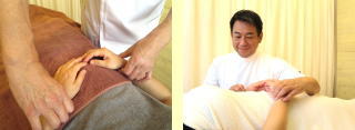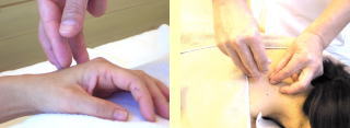 右:東洋式は指の関節も使って、やや強い~強い刺激が特徴の施術です。ただ痛いっ!ではなく、この施術でも眠ってしまわれる方もおられます。(フットバスを含め40分・60分間)
