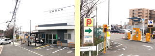 交番横駐車場 / 入口 駐車券をご持参下さい